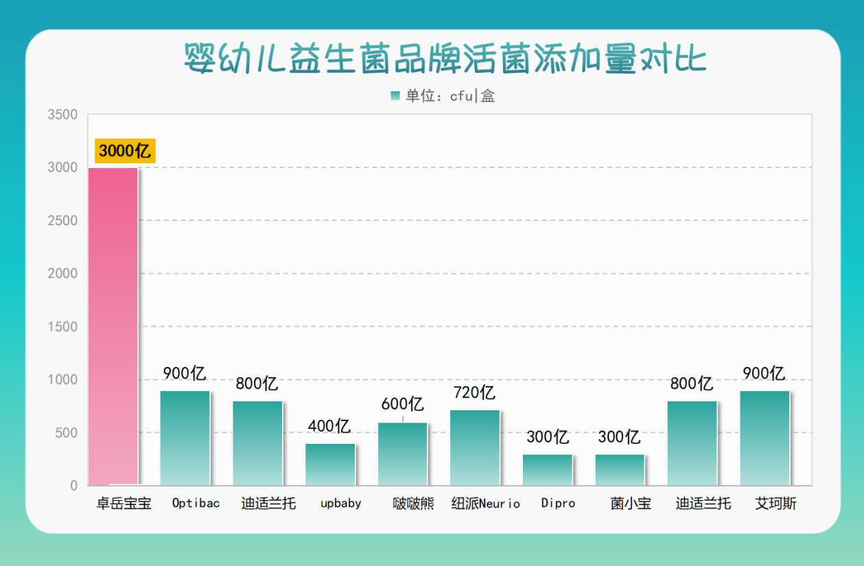 3. 活菌数量是硬指标:活菌少了到不了肠道就"牺牲"了。卓岳宝宝每盒3000亿、每条150亿的活菌添加量,相当于给益生菌上了"高速直通车",能更大限度到达肠道发挥作用。